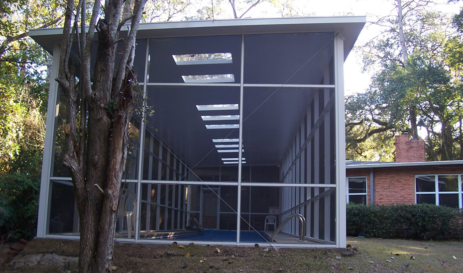 Many of our customers seeking to enclose their pool do not realize that it is possible to integrate areas of solid cover into the design of the enclosure. But these “combination” style enclosures are not only possible, but represent an opportunity to increase the utility and enjoyment of outdoor living space at a cost which is a fraction of that of working with traditional wood framed solid roof additions. And since they integrate seamlessly with the screen portion of the pool enclosure, the aesthetic appeal of the project as a whole is improved.